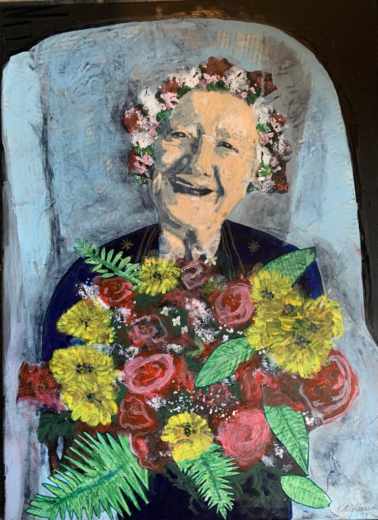 Fish Lady: I stand at the crossing between what you know and what you don’t. Don’t you like the gift I am bringing to you? It is a beautiful fish, at first pencil drawn then all blue, the color of the sky and the sea, all the fluidity of the outer and the inner, your daily mind in retirement that flows from one thing to the next without plan or methodology unless you are cooking a new recipe or learning a new lesson about how to paint shadows. Because the fish’s scales are gold tells that it is from God and needs to be eaten and consumed, digested and made part of your wholeness.